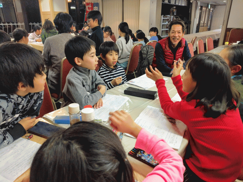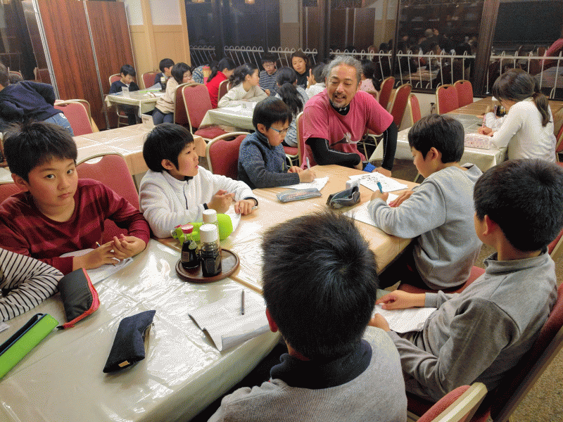 夕食後に、スキー学習会が行われました。スキーの滑り方だけでなく、志賀高原のことも教えてくださいました。ウサギの足跡が雪山に残っていることに気づいていた人は多かったけど、野生のサルも出没することがあるらしいですよ!