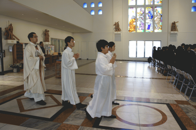 今日は創立記念ミサ、本校の創立記念ミサは「無限罪の聖マリア」のお祝い日に行われます。