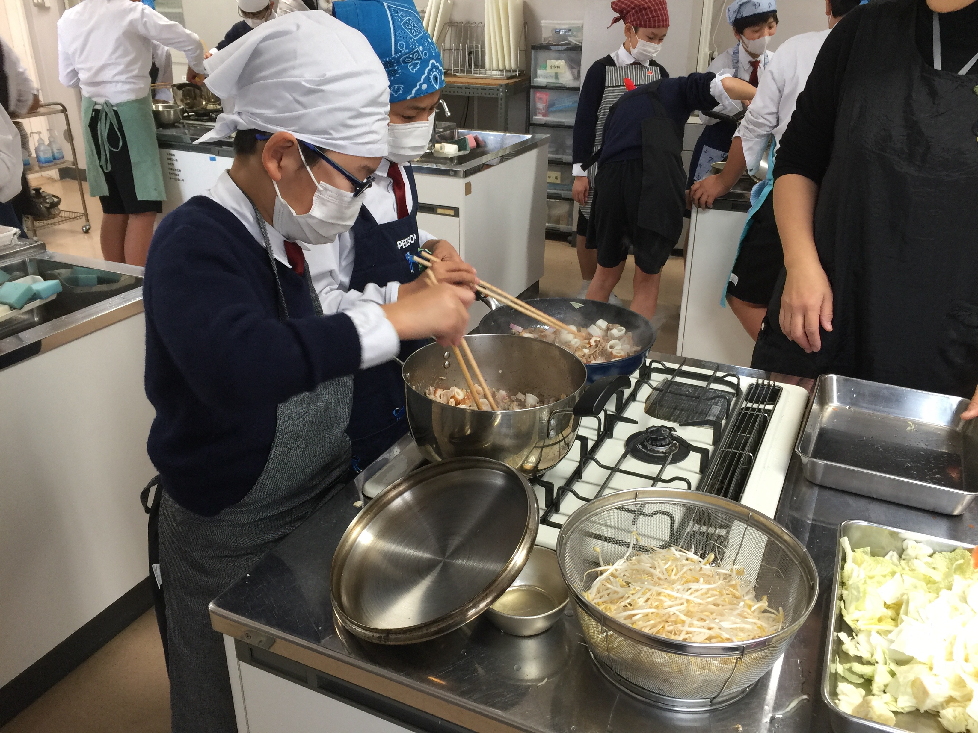 6年生の2学期の調理実習は皿うどん。2月に訪れる長崎県の名物です。