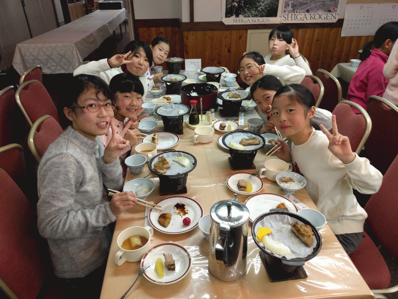 夕食では、みんなそうとうお腹が空いていたのか、おひつのご飯をおかわりするテーブルがいくつもありました。たくさん食べて、眠って、明日にそなえます。