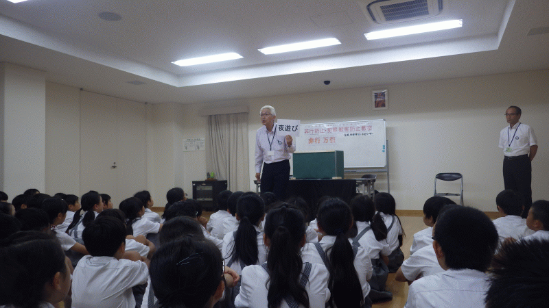 警察の方が来てくださり、子どもたちの周りにある非行の芽についてお話ししてくださいました。