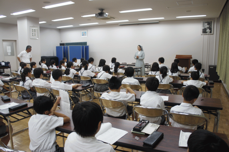 全 3004 件(全601ページ) 過去のページもご覧いただけます ⇒ 前へ 421 | 422 | 423 | 424 | 425 | 次へ 2016/8/19 水泳記録会 本日、なみはやドームにて「関西私小連水泳記録会」が行われました。 本校からは23名の選手が出場いたしました。 本校からは23名の選手が出場いたしました。 男子のメドレーリレーでは全体の2位!フリーメドレーも頑張りました。 男子のメドレーリレーでは全体の2位!フリーメドレーも頑張りました。 個人では6年生の池田君が自由形で3位、新井君が平泳ぎで8位と健闘しました。この記録会で自己ベストを更新した子もたくさんいました。 個人では6年生の池田君が自由形で3位、新井君が平泳ぎで8位と健闘しました。この記録会で自己ベストを更新した子もたくさんいました。 みんなお疲れ様! みんなお疲れ様! 水泳記録会 2016/8/19 本日、なみはやドームにて「関西私小連水泳記録会」が行われました。 本校からは23名の選手が出場いたしました。 本校からは23名の選手が出場いたしました。 男子のメドレーリレーでは全体の2位!フリーメドレーも頑張りました。 男子のメドレーリレーでは全体の2位!フリーメドレーも頑張りました。 個人では6年生の池田君が自由形で3位、新井君が平泳ぎで8位と健闘しました。この記録会で自己ベストを更新した子もたくさんいました。 個人では6年生の池田君が自由形で3位、新井君が平泳ぎで8位と健闘しました。この記録会で自己ベストを更新した子もたくさんいました。 みんなお疲れ様! みんなお疲れ様! 2016/7/26 スイカ登校日 今日は1年生のスイカ登校日、こだまスイカを収穫します! 残念ながら雨でしたが、学校の廊下で収穫したスイカでスイカ割です! 残念ながら雨でしたが、学校の廊下で収穫したスイカでスイカ割です! こだまスイカですが、味はしっかり甘いスイカです。 こだまスイカですが、味はしっかり甘いスイカです。 みんな笑顔のスイカ登校日となりました。 みんな笑顔のスイカ登校日となりました。 スイカ登校日 2016/7/26 今日は1年生のスイカ登校日、こだまスイカを収穫します! 残念ながら雨でしたが、学校の廊下で収穫したスイカでスイカ割です! 残念ながら雨でしたが、学校の廊下で収穫したスイカでスイカ割です! こだまスイカですが、味はしっかり甘いスイカです。 こだまスイカですが、味はしっかり甘いスイカです。 みんな笑顔のスイカ登校日となりました。 みんな笑顔のスイカ登校日となりました。 2016/7/25 トマト登校日 夏休みですが、2年生が登校してきました。 今日はトマト登校日、2年生が学級園で育てたトマトとバジルを収穫します。 今日はトマト登校日、2年生が学級園で育てたトマトとバジルを収穫します。 立派に育ったミニトマトを家庭科室で調理します。今日はギョーザの皮を使ったピザ風にしました。 立派に育ったミニトマトを家庭科室で調理します。今日はギョーザの皮を使ったピザ風にしました。 さあ、みんなで「いただきま〜す!」 さあ、みんなで「いただきま〜す!」 トマト登校日 2016/7/25 夏休みですが、2年生が登校してきました。 今日はトマト登校日、2年生が学級園で育てたトマトとバジルを収穫します。 今日はトマト登校日、2年生が学級園で育てたトマトとバジルを収穫します。 立派に育ったミニトマトを家庭科室で調理します。今日はギョーザの皮を使ったピザ風にしました。 立派に育ったミニトマトを家庭科室で調理します。今日はギョーザの皮を使ったピザ風にしました。 さあ、みんなで「いただきま〜す!」 さあ、みんなで「いただきま〜す!」 2016/7/19 練成会 今日は練成会です。 練成会とは、神様イエス様と仲良くなる会です。みんなでイエス様の教えを深めます。 練成会とは、神様イエス様と仲良くなる会です。みんなでイエス様の教えを深めます。 グループ活動では「山上の垂訓」をテーマに分かち合いを行いました。 グループ活動では「山上の垂訓」をテーマに分かち合いを行いました。 各グループが工夫を凝らした発表をしました。 各グループが工夫を凝らした発表をしました。 今日は朝から尼崎教会のジョバンニ神父様が来てくださいました。 今日は朝から尼崎教会のジョバンニ神父様が来てくださいました。 今年は特別な年。みんなで食事の後にお隣の大聖堂にある「聖なる門」を通ります。 今年は特別な年。みんなで食事の後にお隣の大聖堂にある「聖なる門」を通ります。 練成会の最後はミサです。今日の教えを心に留めて夏休みを過ごしましょう。 練成会の最後はミサです。今日の教えを心に留めて夏休みを過ごしましょう。 練成会 2016/7/19 今日は練成会です。 練成会とは、神様イエス様と仲良くなる会です。みんなでイエス様の教えを深めます。 練成会とは、神様イエス様と仲良くなる会です。みんなでイエス様の教えを深めます。 グループ活動では「山上の垂訓」をテーマに分かち合いを行いました。 グループ活動では「山上の垂訓」をテーマに分かち合いを行いました。 各
