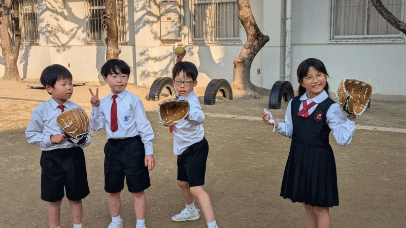 運動場ではオラトリオの子どもたちが、キャッチボールをしていました。