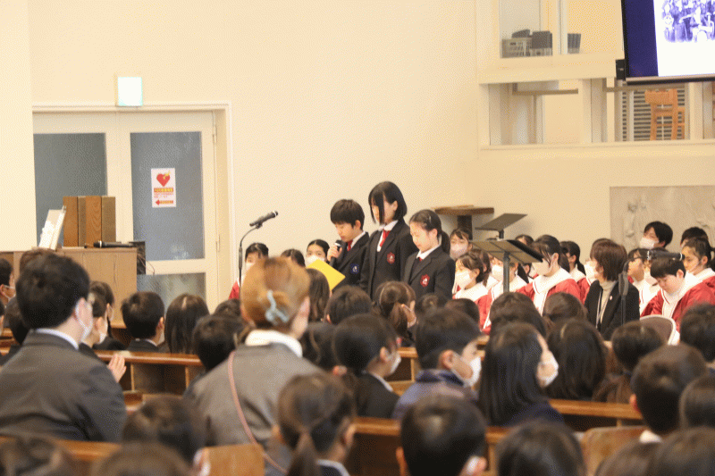 光の子集会があり、1・2年生は視覚障がいについて学んだことを分かち合いました。