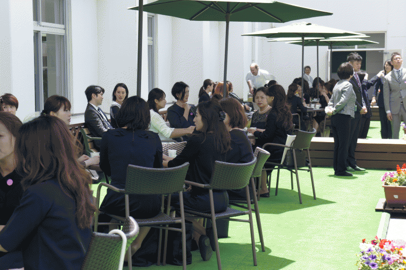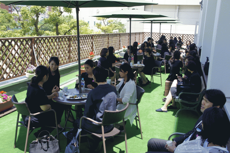 授業の後は、外のテラスでお茶会を開きました。