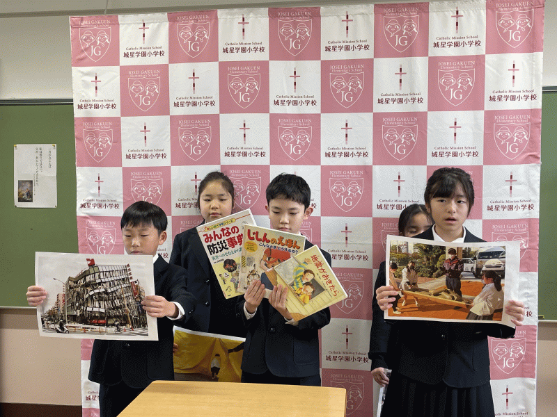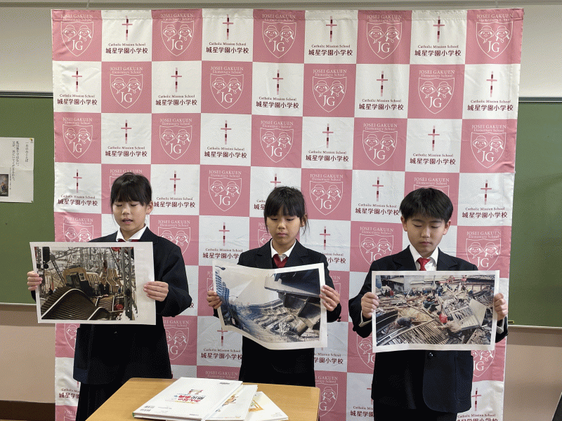 4年生は阪神淡路大震災について学んでいくうちに、自分たちに何ができるのか考え、発表しました。