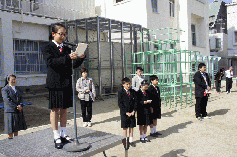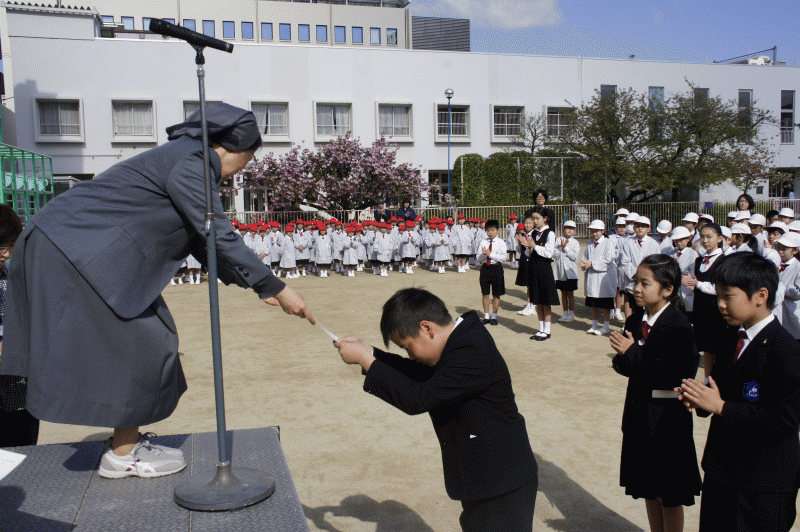 全 3007 件(全602ページ) 過去のページもご覧いただけます ⇒ 前へ 441 | 442 | 443 | 444 | 445 | 次へ 2016/4/18 表彰式 本日、朝会で日本漢字能力検定の表彰式が行われました。 今回表彰されたのは、5年生の大北結衣さん。漢検協会から「優秀賞」に選ばれ、京都で行われた表彰式にも参加しました。おめでとうございます! 今回表彰されたのは、5年生の大北結衣さん。漢検協会から「優秀賞」に選ばれ、京都で行われた表彰式にも参加しました。おめでとうございます! 表彰式 2016/4/18 本日、朝会で日本漢字能力検定の表彰式が行われました。 今回表彰されたのは、5年生の大北結衣さん。漢検協会から「優秀賞」に選ばれ、京都で行われた表彰式にも参加しました。おめでとうございます! 今回表彰されたのは、5年生の大北結衣さん。漢検協会から「優秀賞」に選ばれ、京都で行われた表彰式にも参加しました。おめでとうございます! 2016/4/15 朝会 今日は外で朝会です。1年生が見学に来ています。 まずは、犬塚先生より本日の御言葉「苦しみにあったことは私にとって幸せでした。私はそれであなたのおきてを学びました」についてのお話がありました。失敗を恐れず失敗から何かを学ぶ事が大切です。 まずは、犬塚先生より本日の御言葉「苦しみにあったことは私にとって幸せでした。私はそれであなたのおきてを学びました」についてのお話がありました。失敗を恐れず失敗から何かを学ぶ事が大切です。 続いて児童会の前期運営委員会の任命式が行われました。今回、運営委員に選ばれたのは。議長・・・木村紗さん副議長・・友田侑希くん書記・・・岩永倫太郎くん ・・・湖?羽月さん 続いて児童会の前期運営委員会の任命式が行われました。今回、運営委員に選ばれたのは。議長・・・木村紗さん副議長・・友田侑希くん書記・・・岩永倫太郎くん ・・・湖?羽月さん 一人一人、壇上でのあいさつも立派です。 一人一人、壇上でのあいさつも立派です。 続いて4年生から6年生までの学級委員の任命式、代表して6C学級委員の大谷香暢さんに任命書が手渡されました。 続いて4年生から6年生までの学級委員の任命式、代表して6C学級委員の大谷香暢さんに任命書が手渡されました。 朝会 2016/4/15 今日は外で朝会です。1年生が見学に来ています。 まずは、犬塚先生より本日の御言葉「苦しみにあったことは私にとって幸せでした。私はそれであなたのおきてを学びました」についてのお話がありました。失敗を恐れず失敗から何かを学ぶ事が大切です。 まずは、犬塚先生より本日の御言葉「苦しみにあったことは私にとって幸せでした。私はそれであなたのおきてを学びました」についてのお話がありました。失敗を恐れず失敗から何かを学ぶ事が大切です。 続いて児童会の前期運営委員会の任命式が行われました。今回、運営委員に選ばれたのは。議長・・・木村紗さん副議長・・友田侑希くん書記・・・岩永倫太郎くん ・・・湖?羽月さん 続いて児童会の前期運営委員会の任命式が行われました。今回、運営委員に選ばれたのは。議長・・・木村紗さん副議長・・友田侑希くん書記・・・岩永倫太郎くん ・・・湖?羽月さん 一人一人、壇上でのあいさつも立派です。 一人一人、壇上でのあいさつも立派です。 続いて4年生から6年生までの学級委員の任命式、代表して6C学級委員の大谷香暢さんに任命書が手渡されました。 続いて4年生から6年生までの学級委員の任命式、代表して6C学級委員の大谷香暢さんに任命書が手渡されました。 2016/4/15 1年生安全教室 本日、1年生は安全教室を行いました。 東警察署のお巡りさんが、道の安全な歩き方を教えてくださいました。 東警察署のお巡りさんが、道の安全な歩き方を教えてくださいました。 信号機のない横断歩道や、道に障害物のある場合など。学校の運動場に実際の車や信号機を置いて歩き方の練習です。 信号機のない横断歩道や、道に障害物のある場合など。学校の運動場に実際の車や信号機を置いて歩き方の練習です。 信号がある場合も、安全確認をして、さあスタート! 信号がある場合も、安全確認をして、さあスタート! 1年生安全教室 2016/4/15 本日、1年生は安全教室を行いました。 東警察署のお巡りさんが、道の安全な歩き方を教えてくださいました。 東警察署のお巡りさんが、道の安全な歩き方を教えてくださいました。 信号機のない横断歩道や、道に障害物のある場合など。学校の運動場に実際の車や信号機を置いて歩き方の練習です。 信号機のない横断歩道や、道に障害物のある場合など。学校の運動場に実際の車や信号機を置いて歩き方の練習です。 信号がある場合も、安全確認をして、さあスタート! 信号がある場合も、安全確認をして、さあスタート! 2016/4/14 1年生のお弁当 1年生は4時間目にお弁当を食べます。 慣れるまでは、準備に時間がかかります。お弁当をひっくり返さないように、ゆっくり丁寧に。 慣れるまでは、準備に時間がかかります。お弁当を
