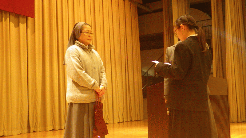 今日始業式の後に、ボリビアに行かれている漢那シスターにおにぎり献金をお渡ししました。