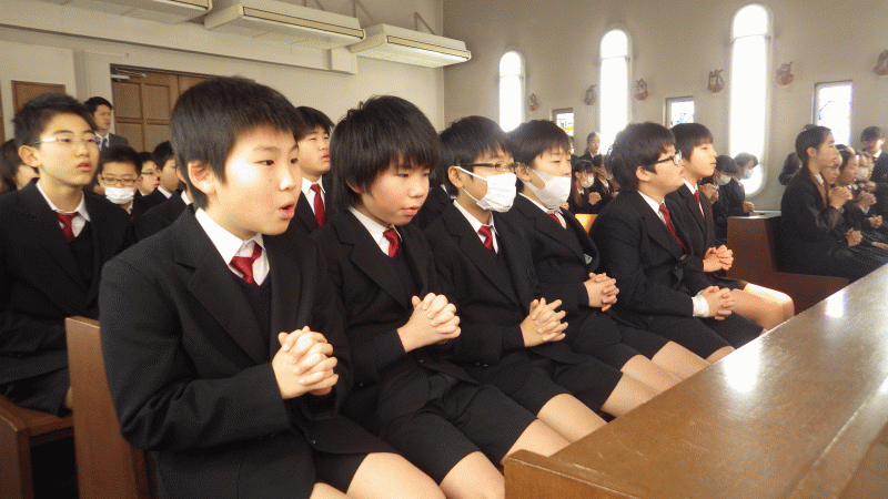 高学年はお御堂で祈りの集いです。今年も実り多き一年となりますように。