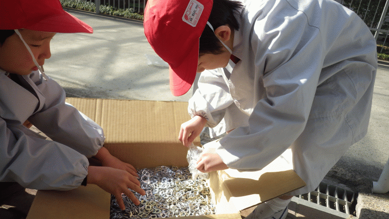 缶ふみ、プルタブ、キャップ集めもみんなお手伝いしてくれました。
