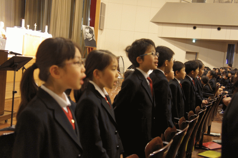 音楽が大好きだったドンボスコに届けと、子どもたちの歌声が講堂に響きました。