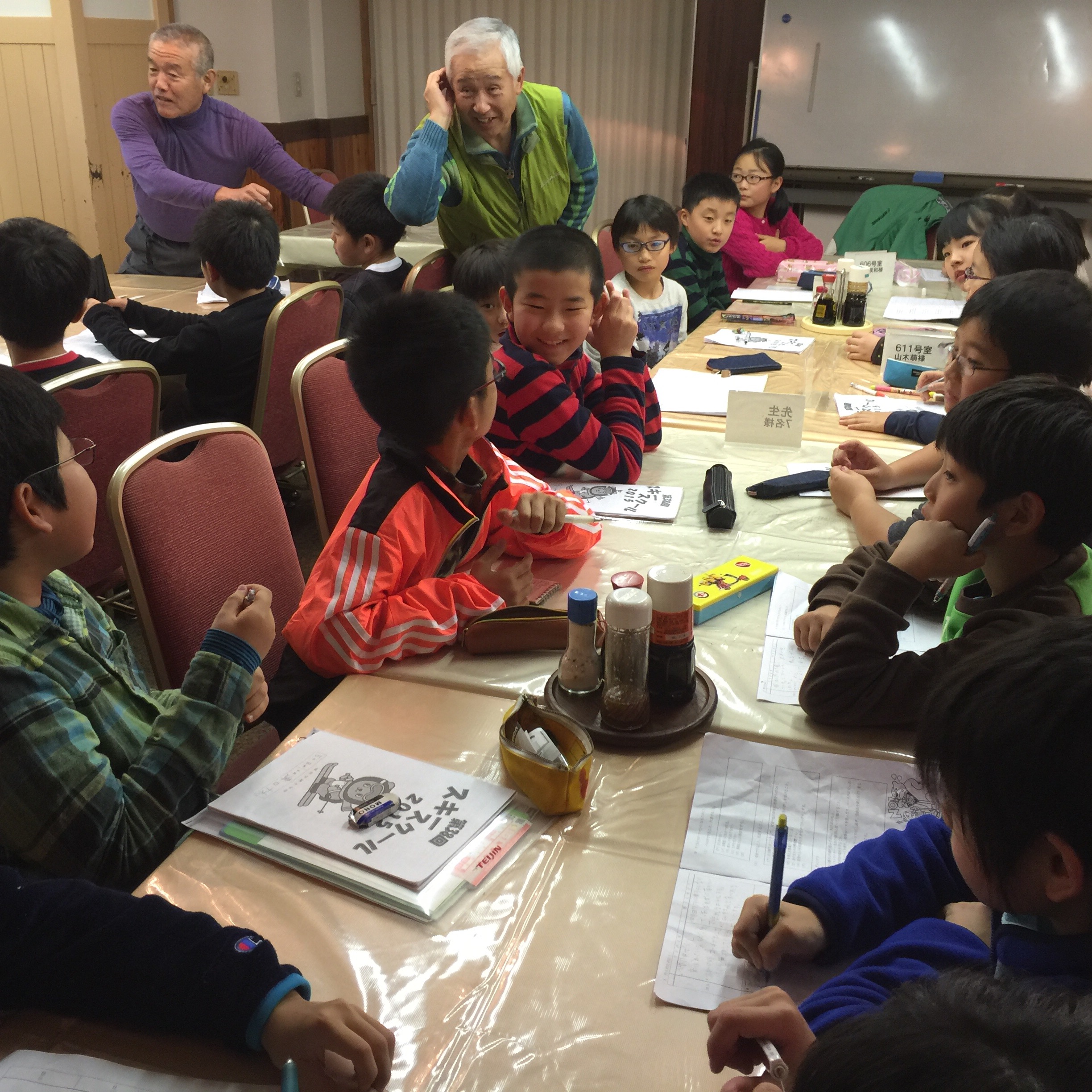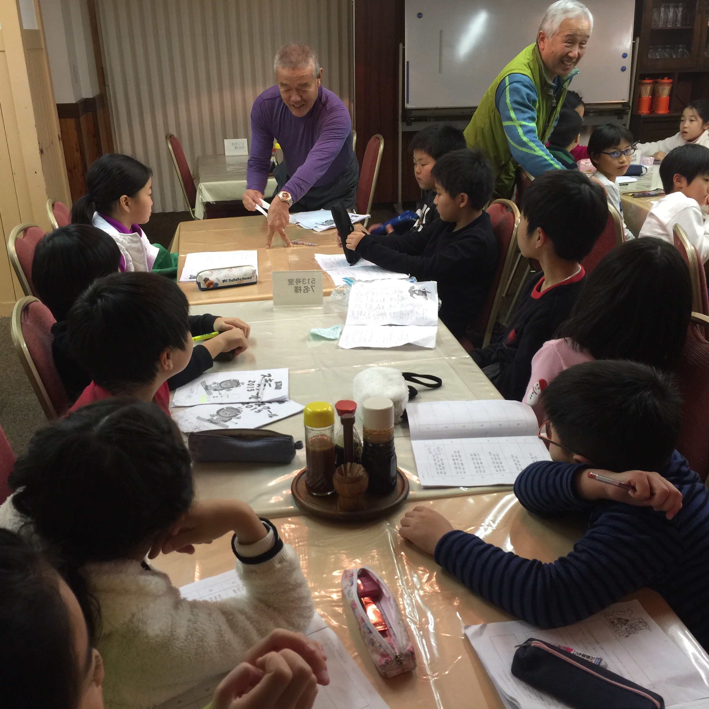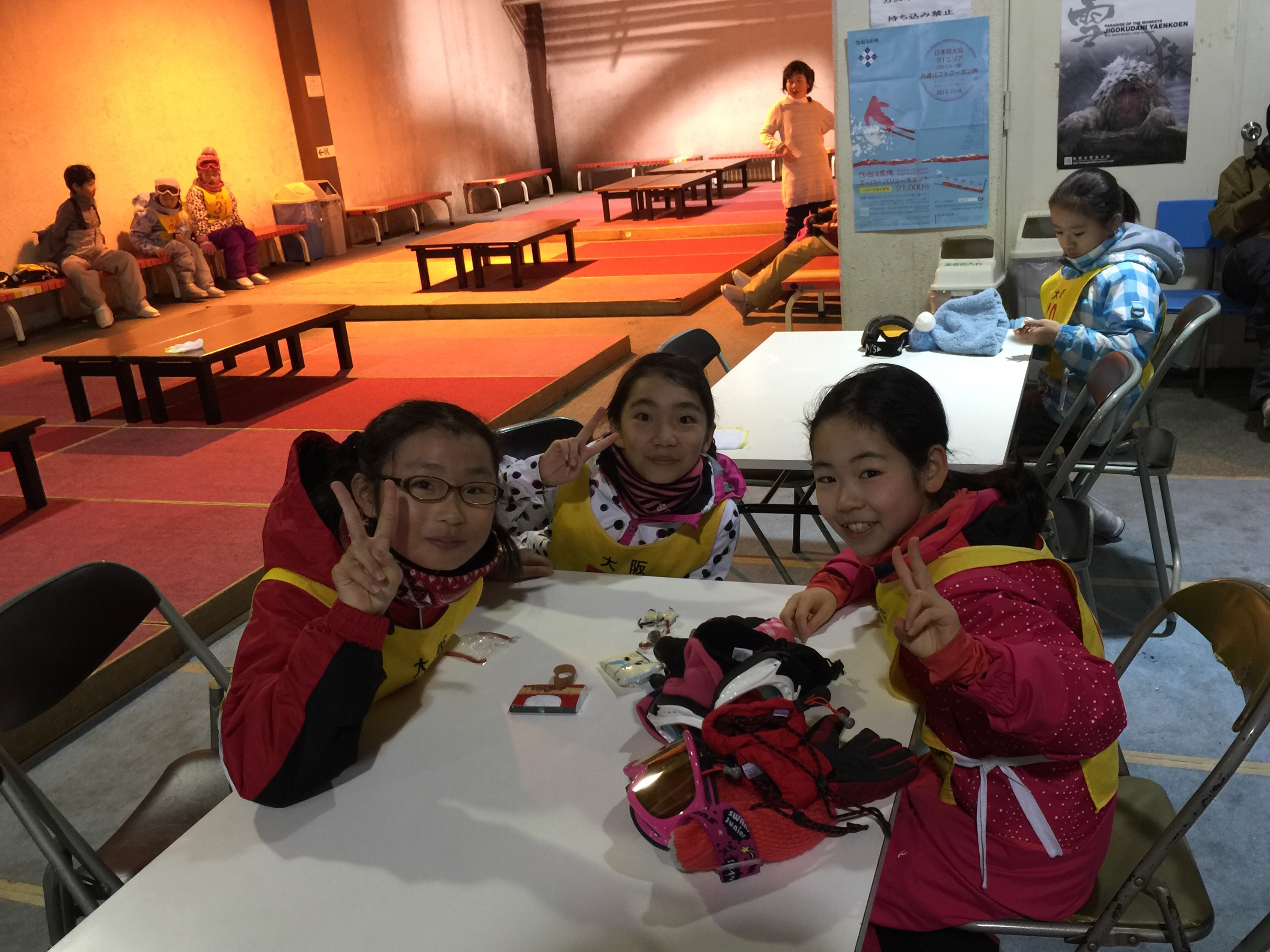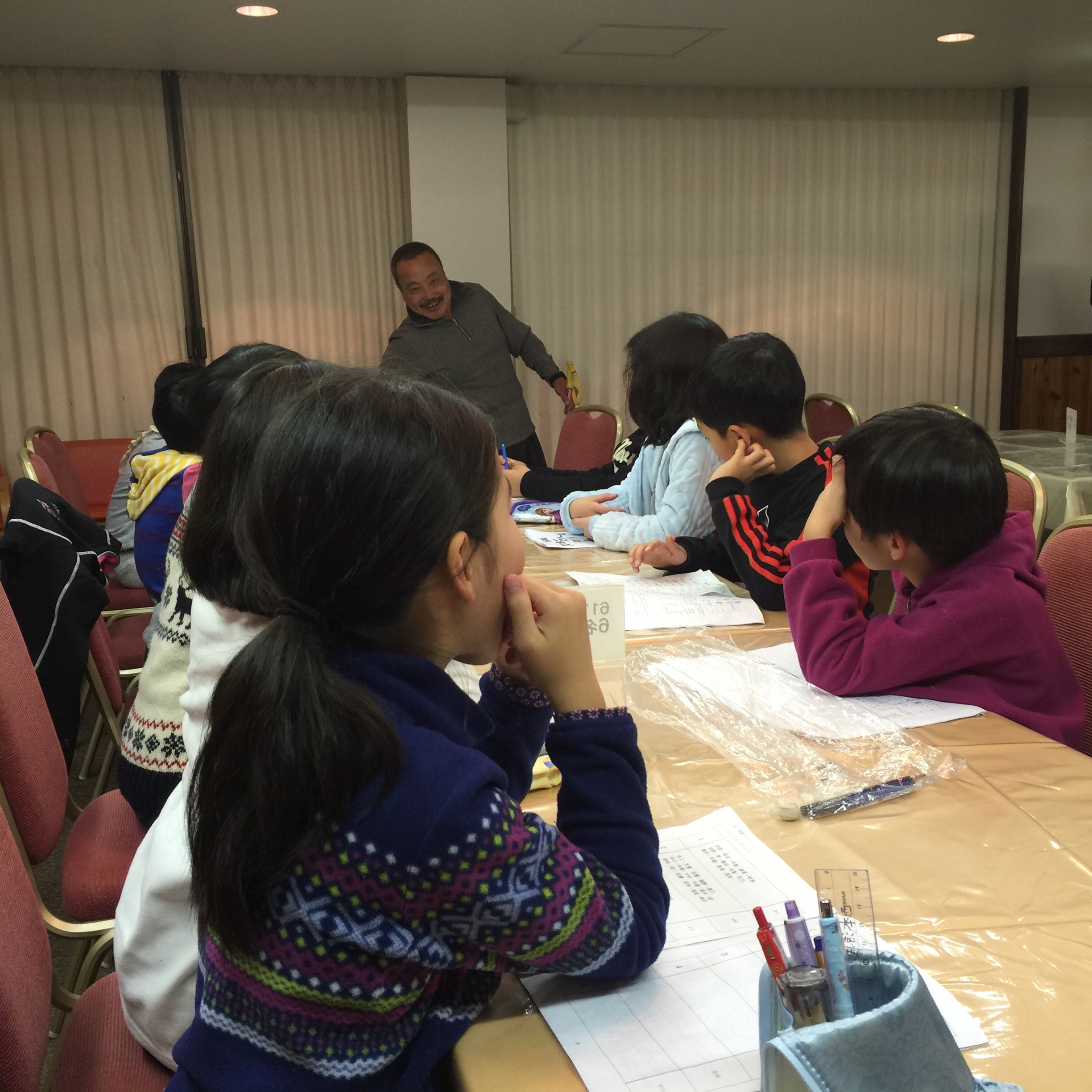 1日スキーを満喫した後は,部屋でお勉強です。