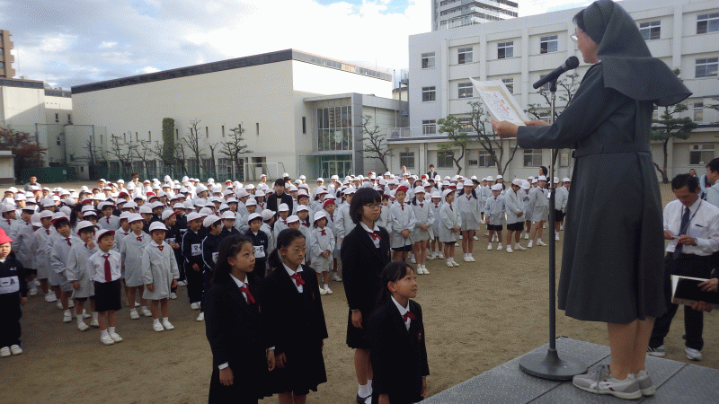 今日はの児童朝会は「感謝の朝会」