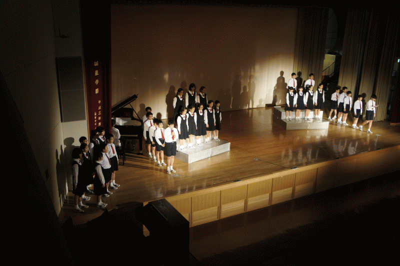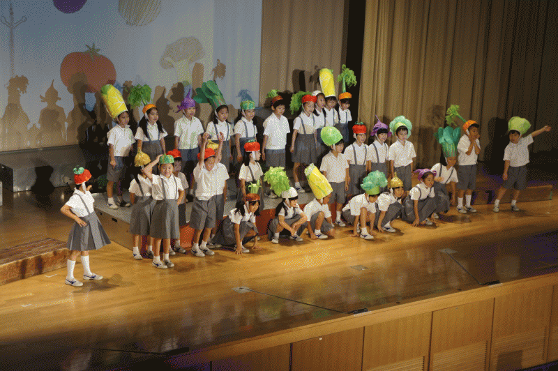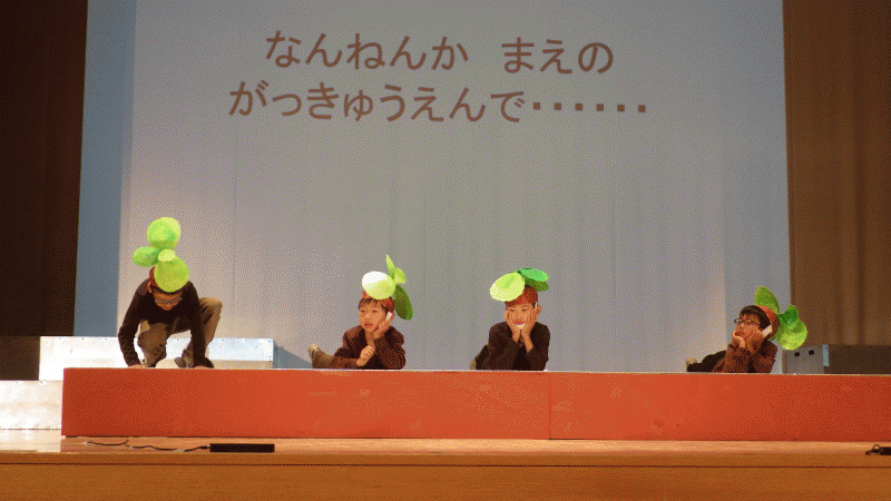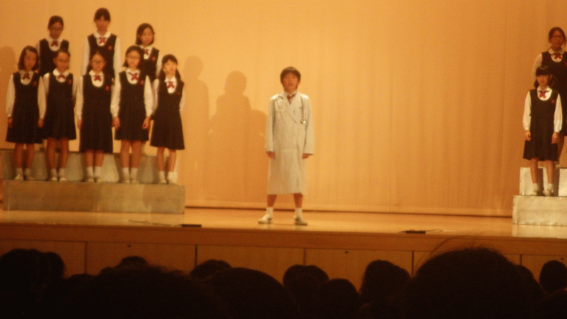 今日は、来週の土曜日に行われる学習発表会前の公開リハーサル「校内発表会です」