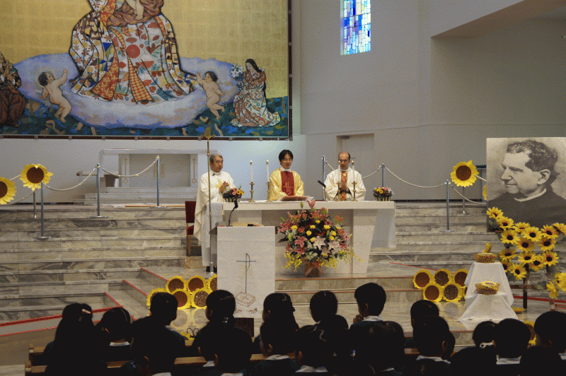 本日、城星学園小学校の創立者ドン・ボスコの生誕200周年の記念ミサが行われました。