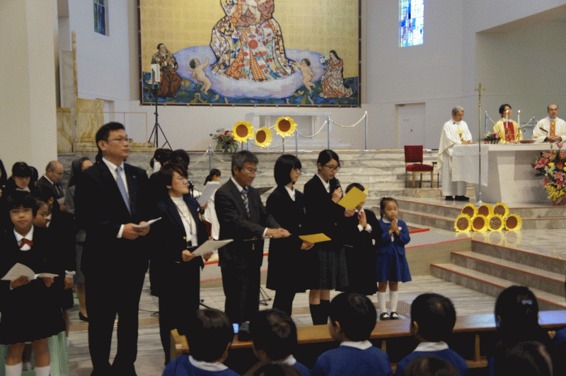 今日はサレジオ会の浦田神父様を東京からお招きし、星光学園の鈴木神父様、本校の中高で宗教を担当しているジョバンニ神父様と共に司式を執り行ってくださいました。