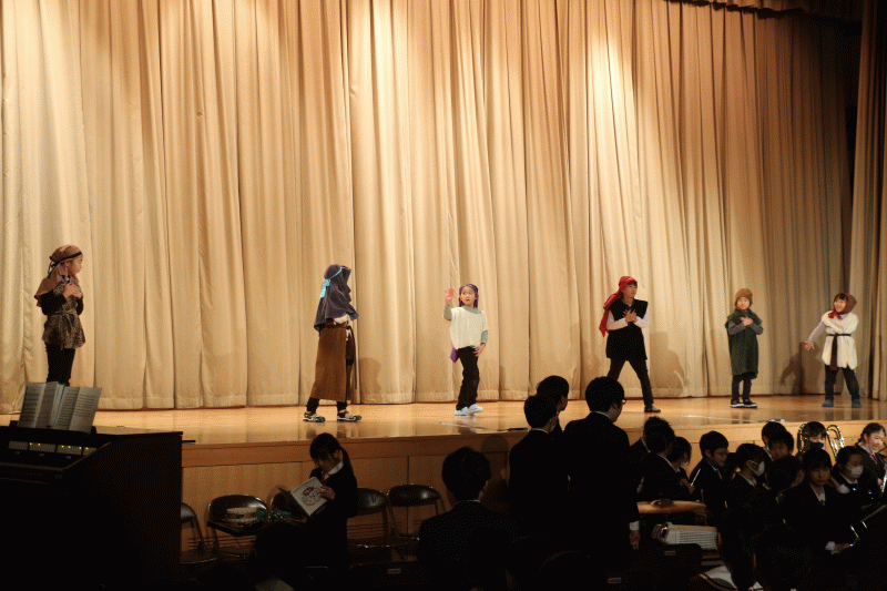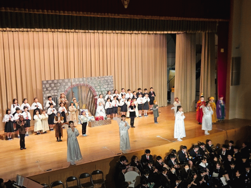 クリスマスページェントの本番があり、小学校では救い主がご生誕されました。