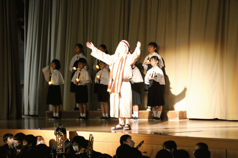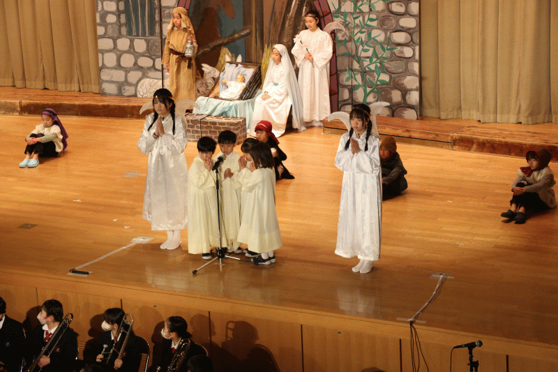 小学校聖歌隊は《Jesus,Son of God,Son of Man》を演奏し、イエス様のご降誕をお祝いしました。