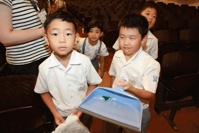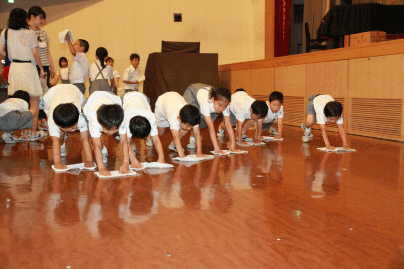 1・2年生で奉仕活動として,本校講堂を清掃しました。
