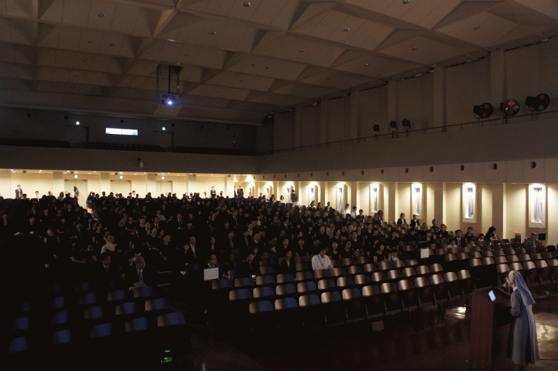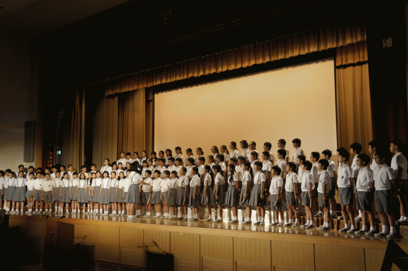 「ドン・ボスコの言葉」「地球星歌」子ども達の美しい声が講堂を包みます。