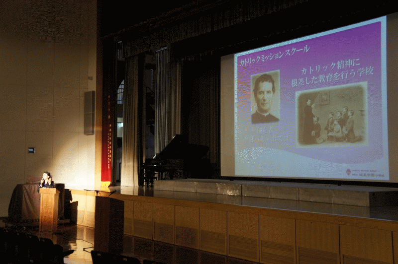 学校長より、城星学園小学校の目指す教育について、創立者ドン・ボスコの話も織り交ぜながら説明をいたしました。