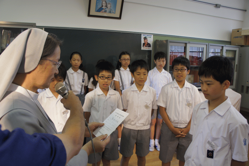 今日は朝会で表彰式が行われました。