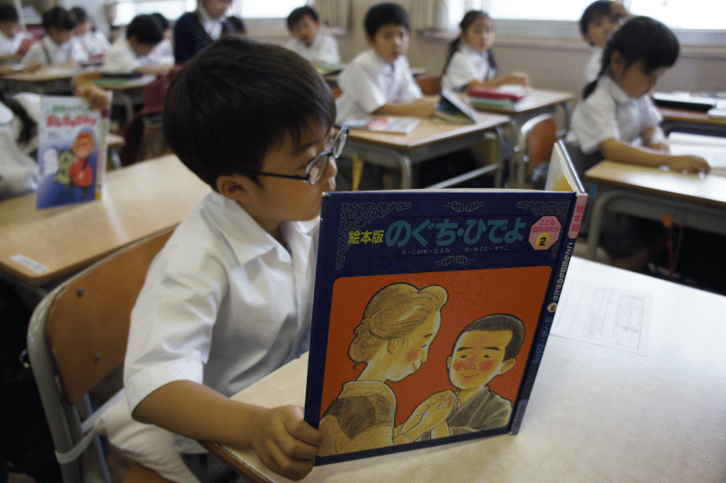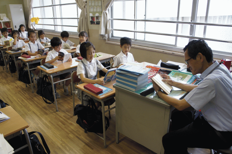 読書の時間は先生も一緒に読書、子どもたちと同じ事をして過ごします。