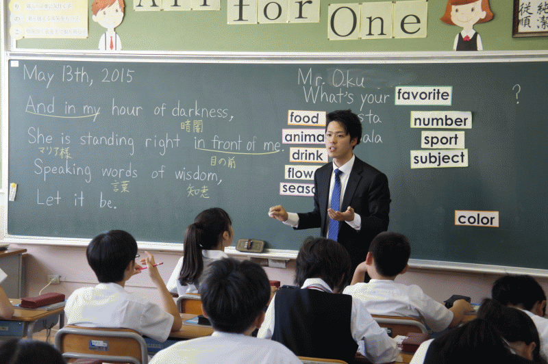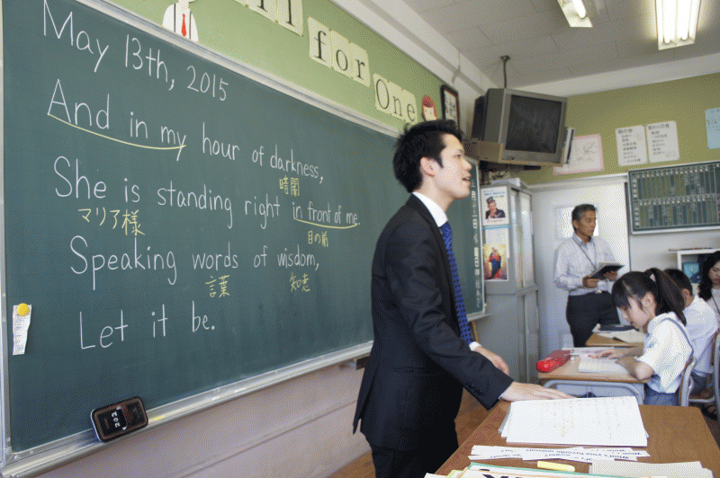まずは、みんなで英語の歌を歌います。曲はBeatlesの「Let it be」です。
