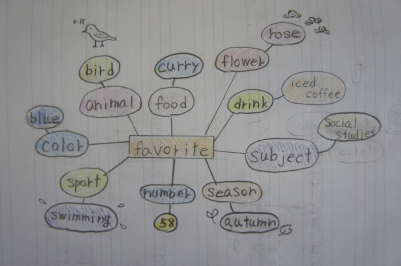 続いて児童同士で「Whats your favorite○○?」と言う質問をお互いに掛け合います。