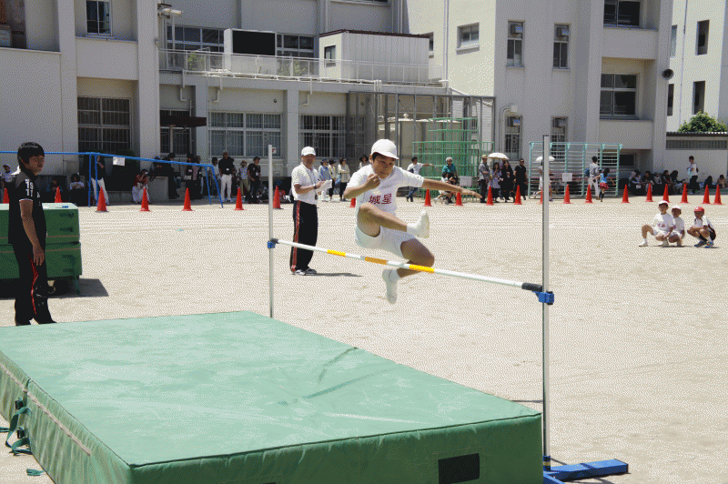 高跳びや、走り幅跳びなど、日頃学校の体育で行っている競技も、いつもとは違う雰囲気。子ども達はそんな中で自分の力を出し切りました。