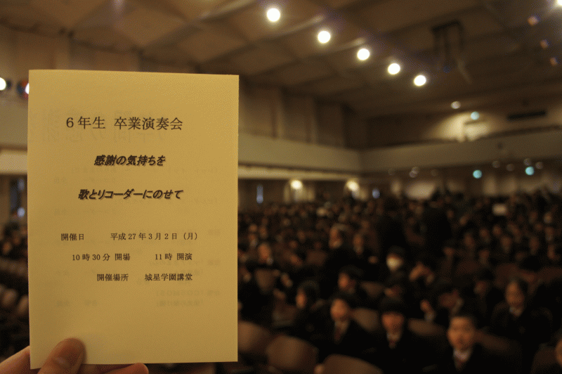 全 3007 件(全602ページ) 過去のページもご覧いただけます ⇒ 前へ 476 | 477 | 478 | 479 | 480 | 次へ 2015/3/2 感謝ミサ 6年生のすばらしい演奏の後は、感謝ミサが行われました。 6年生はこの6年間のお恵みを、1年生から5年生は今年1年のお恵みを感謝します。 6年生はこの6年間のお恵みを、1年生から5年生は今年1年のお恵みを感謝します。 学校で行うミサも回を重ねるたびに良くなっていますが、来年度は大聖堂の修復も終わり、横の大聖堂での御ミサに戻る予定です。 学校で行うミサも回を重ねるたびに良くなっていますが、来年度は大聖堂の修復も終わり、横の大聖堂での御ミサに戻る予定です。 感謝ミサでは、6年生の児童一人一人に祝福が授けられました。 感謝ミサでは、6年生の児童一人一人に祝福が授けられました。 6年生!いっぱいお祈りしたかい? 6年生!いっぱいお祈りしたかい? 感謝ミサ 2015/3/2 6年生のすばらしい演奏の後は、感謝ミサが行われました。 6年生はこの6年間のお恵みを、1年生から5年生は今年1年のお恵みを感謝します。 6年生はこの6年間のお恵みを、1年生から5年生は今年1年のお恵みを感謝します。 学校で行うミサも回を重ねるたびに良くなっていますが、来年度は大聖堂の修復も終わり、横の大聖堂での御ミサに戻る予定です。 学校で行うミサも回を重ねるたびに良くなっていますが、来年度は大聖堂の修復も終わり、横の大聖堂での御ミサに戻る予定です。 感謝ミサでは、6年生の児童一人一人に祝福が授けられました。 感謝ミサでは、6年生の児童一人一人に祝福が授けられました。 6年生!いっぱいお祈りしたかい? 6年生!いっぱいお祈りしたかい? 2015/3/2 卒業演奏会 今日は6年生の卒業演奏会が行われました。 1〜5年生、先生、そして保護者の皆さんを招待しての演奏会です。 1〜5年生、先生、そして保護者の皆さんを招待しての演奏会です。 開演前の舞台の上では6年生が緊張の面持ち。 開演前の舞台の上では6年生が緊張の面持ち。 ソプラノとアルトリコーダーでのアンサンブルも様になりました。 ソプラノとアルトリコーダーでのアンサンブルも様になりました。 合唱もよく歌えていました。声がそろう、心がそろう。思いは聞き手の心に響きます。 合唱もよく歌えていました。声がそろう、心がそろう。思いは聞き手の心に響きます。 和太鼓は呼吸!「疾風」が吹きましたね! 和太鼓は呼吸!「疾風」が吹きましたね! 5年生から取り組んできた「八木節」、今回は琴も入った特別版でした。 5年生から取り組んできた「八木節」、今回は琴も入った特別版でした。 在校生からは合唱曲「ありがとう6年生」をプレゼント! 在校生からは合唱曲「ありがとう6年生」をプレゼント! 最後の合唱は「いのち」6年生一人一人の命が、これからも輝きますように。 最後の合唱は「いのち」6年生一人一人の命が、これからも輝きますように。 卒業演奏会 2015/3/2 今日は6年生の卒業演奏会が行われました。 1〜5年生、先生、そして保護者の皆さんを招待しての演奏会です。 1〜5年生、先生、そして保護者の皆さんを招待しての演奏会です。 開演前の舞台の上では6年生が緊張の面持ち。 開演前の舞台の上では6年生が緊張の面持ち。 ソプラノとアルトリコーダーでのアンサンブルも様になりました。 ソプラノとアルトリコーダーでのアンサンブルも様になりました。 合唱もよく歌えていました。声がそろう、心がそろう。思いは聞き手の心に響きます。 合唱もよく歌えていました。声がそろう、心がそろう。思いは聞き手の心に響きます。 和太鼓は呼吸!「疾風」が吹きましたね! 和太鼓は呼吸!「疾風」が吹きましたね! 5年生から取り組んできた「八木節」、今回は琴も入った特別版でした。 5年生から取り組んできた「八木節」、今回は琴も入った特別版でした。 在校生からは合唱曲「ありがとう6年生」をプレゼント! 在校生からは合唱曲「ありがとう6年生」をプレゼント! 最後の合唱は「いのち」6年生一人一人の命が、これからも輝きますように。 最後の合唱は「いのち」6年生一人一人の命が、これからも輝きますように。 2015/2/27 ゴールに向かって! 今日は全員集まっての卒業式練習が行われました。 6年生は後一週間で卒業。先生方の指導にも力が入ります!立派な姿で卒業してほしい!腹から声出せ六年生! 6年生は後一週間で卒業。先生方の指導にも力が入ります!立派な姿で卒業してほしい!腹から声出せ六年生! 式練習の後は、児童会総会。今年度の後半のまとめです。各児童会の報告や、委員会学級の反省が行われます。来年度に向けての目標も多く述べられました。 式練習の後は、児童会総会。今年度の後半のまとめです。各児童会の報告や、委員会学級の反省が行われます。来年度に向けての目標も多く述べられました。 ゴールに向かって! 2015/2/27 今日は全員集まっての卒業式練習が行われました。 6年生は後一週間で卒業。先生方の指導にも力が入ります!立派な姿で卒業してほしい!腹から声出せ六年生! 6年生
