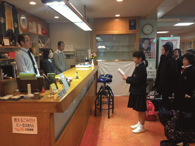 全 3007 件(全602ページ) 過去のページもご覧いただけます ⇒ 前へ 481 | 482 | 483 | 484 | 485 | 次へ 2015/2/26 東大寺を見学しました 東大寺といえば…大仏です。 鹿によるお出迎えです。 鹿によるお出迎えです。 大仏の鼻と同じ大きさの穴をくぐってみました。うまくいけば願い事が叶うそうです。「先生は無理ですね」という声。大きなお世話ですよ! 大仏の鼻と同じ大きさの穴をくぐってみました。うまくいけば願い事が叶うそうです。「先生は無理ですね」という声。大きなお世話ですよ! 大仏さまの前で記念写真。やっぱり大きいですね。 大仏さまの前で記念写真。やっぱり大きいですね。 東大寺を見学しました 2015/2/26 東大寺といえば…大仏です。 鹿によるお出迎えです。 鹿によるお出迎えです。 大仏の鼻と同じ大きさの穴をくぐってみました。うまくいけば願い事が叶うそうです。「先生は無理ですね」という声。大きなお世話ですよ! 大仏の鼻と同じ大きさの穴をくぐってみました。うまくいけば願い事が叶うそうです。「先生は無理ですね」という声。大きなお世話ですよ! 大仏さまの前で記念写真。やっぱり大きいですね。 大仏さまの前で記念写真。やっぱり大きいですね。 2015/2/26 おはようございます 2日目がはじまりました。 お世話になったユースホステルの方に挨拶をしました。今日も良い学習ができますように。 お世話になったユースホステルの方に挨拶をしました。今日も良い学習ができますように。 おはようございます 2015/2/26 2日目がはじまりました。 お世話になったユースホステルの方に挨拶をしました。今日も良い学習ができますように。 お世話になったユースホステルの方に挨拶をしました。今日も良い学習ができますように。 2015/2/25 1日目を終えて 夜の学習会では,予定を変更して今日できなかった発表と明日の発表をしました。 みんな疲れてよく寝ています。明日も頑張ろうね。 みんな疲れてよく寝ています。明日も頑張ろうね。 1日目を終えて 2015/2/25 夜の学習会では,予定を変更して今日できなかった発表と明日の発表をしました。 みんな疲れてよく寝ています。明日も頑張ろうね。 みんな疲れてよく寝ています。明日も頑張ろうね。 2015/2/25 宿舎でゆっくり過ごしています 2日間お世話になるホテルの方に挨拶しました。よろしくお願いします。 2日間お世話になるホテルの方に挨拶しました。よろしくお願いします。 お風呂に入るまでの時間を使って見学のまとめをしています。良いまとめができたかな? お風呂に入るまでの時間を使って見学のまとめをしています。良いまとめができたかな? 宿舎でゆっくり過ごしています 2015/2/25 2日間お世話になるホテルの方に挨拶しました。よろしくお願いします。 2日間お世話になるホテルの方に挨拶しました。よろしくお願いします。 お風呂に入るまでの時間を使って見学のまとめをしています。良いまとめができたかな? お風呂に入るまでの時間を使って見学のまとめをしています。良いまとめができたかな? 2015/2/25 1日目,午後の見学を終え,宿舎に向かってます 1日目の午後の様子をまとめてご覧ください。 板蓋宮跡の見学です。勉強すればするほど蘇我氏が大きな力を持っていたことが伝わってきます。 板蓋宮跡の見学です。勉強すればするほど蘇我氏が大きな力を持っていたことが伝わってきます。 飛鳥寺の見学です。住職の方が丁寧にお話してくださいました。 飛鳥寺の見学です。住職の方が丁寧にお話してくださいました。 日本最古の大仏さま。顔の左右の表情が違います。 日本最古の大仏さま。顔の左右の表情が違います。 亀型石造物の見学です。どこが亀?という声もありましたが,わかりましたか? 亀型石造物の見学です。どこが亀?という声もありましたが,わかりましたか? 万葉文化館の見学の様子です。万葉集だけでなく,当時の人々の生活の様子もわかります。 万葉文化館の見学の様子です。万葉集だけでなく,当時の人々の生活の様子もわかります。 1日目,午後の見学を終え,宿舎に向かってます 2015/2/25 1日目の午後の様子をまとめてご覧ください。 板蓋宮跡の見学です。勉強すればするほど蘇我氏が大きな力を持っていたことが伝わってきます。 板蓋宮跡の見学です。勉強すればするほど蘇我氏が大きな力を持っていたことが伝わってきます。 飛鳥寺の見学です。住職の方が丁寧にお話してくださいました。 飛鳥寺の見学です。住職の方が丁寧にお話してくださいました。 日本最古の大仏さま。顔の左右の表情が違います。 日本最古の大仏さま。顔の左右の表情が違います。 亀型石造物の見学です。どこが亀?という声もありましたが,わかりましたか? 亀型石造物の見学です。どこが亀?という声もありましたが,わかりましたか? 万葉文化館の見学の様子です。万葉集だけでなく,当時の人々の生活の様子もわかります。 万葉文化館の見学の様子です。万葉集だけでなく,当時の人々の生活の様子もわかります。 全 3007 件(全602ページ