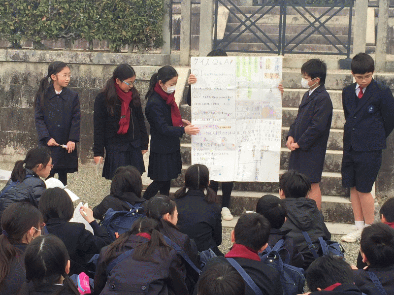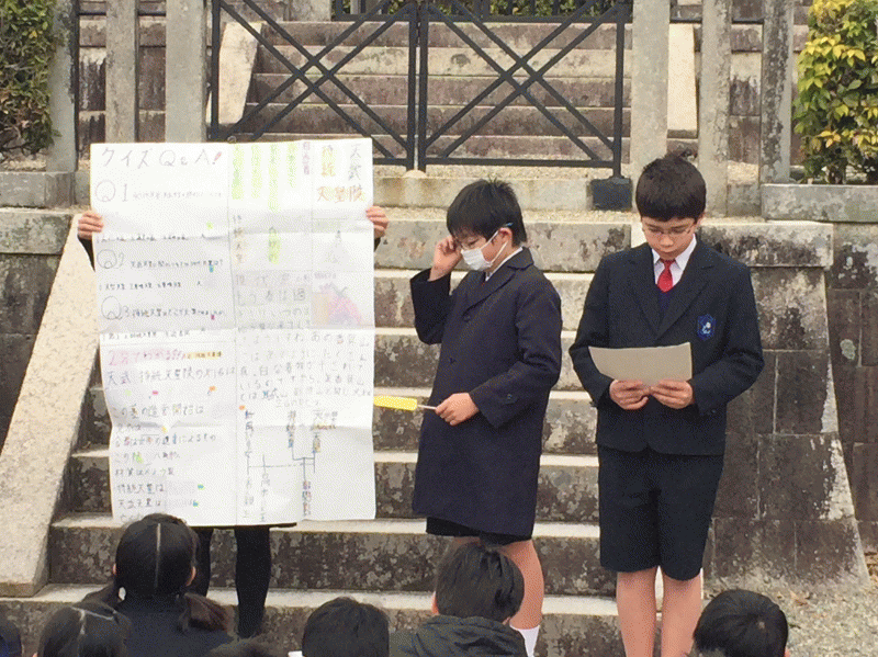 全 3007 件(全602ページ) 過去のページもご覧いただけます ⇒ 前へ 481 | 482 | 483 | 484 | 485 | 次へ 2015/2/25 石舞台古墳の見学が終わりました。 集合写真を撮ったあと,楽しいクイズを混ぜた発表がありました。笑いが溢れていました。 集合写真を撮ったあと,楽しいクイズを混ぜた発表がありました。笑いが溢れていました。 石舞台古墳の見学が終わりました。 2015/2/25 集合写真を撮ったあと,楽しいクイズを混ぜた発表がありました。笑いが溢れていました。 集合写真を撮ったあと,楽しいクイズを混ぜた発表がありました。笑いが溢れていました。 2015/2/25 橘寺を見学しました。午前中最後の見学でした。 聖徳太子が生まれた,とされている橘寺。馬小屋で生まれた,と、いう言い伝えがあり,お寺には大きな馬の像もありました。どこかで聞いたことのあるお話です。10分間という限られた時間でしたが,しっかり見学できました。 発表の様子です。 発表の様子です。 馬の像の前での1枚。伊東写真館の方にもたくさん撮っていただきました。楽しみにしておいてください。 馬の像の前での1枚。伊東写真館の方にもたくさん撮っていただきました。楽しみにしておいてください。 こちらは二面石の前で。ウーン,すごくテンションが高いです。 こちらは二面石の前で。ウーン,すごくテンションが高いです。 集中していましたね。良い見学になりました。 集中していましたね。良い見学になりました。 橘寺を見学しました。午前中最後の見学でした。 2015/2/25 聖徳太子が生まれた,とされている橘寺。馬小屋で生まれた,と、いう言い伝えがあり,お寺には大きな馬の像もありました。どこかで聞いたことのあるお話です。10分間という限られた時間でしたが,しっかり見学できました。 発表の様子です。 発表の様子です。 馬の像の前での1枚。伊東写真館の方にもたくさん撮っていただきました。楽しみにしておいてください。 馬の像の前での1枚。伊東写真館の方にもたくさん撮っていただきました。楽しみにしておいてください。 こちらは二面石の前で。ウーン,すごくテンションが高いです。 こちらは二面石の前で。ウーン,すごくテンションが高いです。 集中していましたね。良い見学になりました。 集中していましたね。良い見学になりました。 2015/2/25 他校種との交わり。 今日、1年生の子ども達は本学園幼稚園の年中さんと一緒に遊びました。 遊ぶといっても授業の一環です。来年から2年生お兄さんお姉さんになる準備です。 遊ぶといっても授業の一環です。来年から2年生お兄さんお姉さんになる準備です。 子どもたちが考えたおもちゃやゲームで、年中さんをおもてなしです。 子どもたちが考えたおもちゃやゲームで、年中さんをおもてなしです。 みんな笑顔!楽しそうですね。 みんな笑顔!楽しそうですね。 幼稚園の子ども達は、お兄さんお姉さんにあこがれを持ってくれたかな? 幼稚園の子ども達は、お兄さんお姉さんにあこがれを持ってくれたかな? 他校種との交わり。 2015/2/25 今日、1年生の子ども達は本学園幼稚園の年中さんと一緒に遊びました。 遊ぶといっても授業の一環です。来年から2年生お兄さんお姉さんになる準備です。 遊ぶといっても授業の一環です。来年から2年生お兄さんお姉さんになる準備です。 子どもたちが考えたおもちゃやゲームで、年中さんをおもてなしです。 子どもたちが考えたおもちゃやゲームで、年中さんをおもてなしです。 みんな笑顔!楽しそうですね。 みんな笑顔!楽しそうですね。 幼稚園の子ども達は、お兄さんお姉さんにあこがれを持ってくれたかな? 幼稚園の子ども達は、お兄さんお姉さんにあこがれを持ってくれたかな? 2015/2/25 6年生錬成会 今日、6年生は小学校最後の錬成会「祈りの時間」をもちました。 カトリックミッションスクールに通った子ども達。どんなときにもお祈りをしてきました。 カトリックミッションスクールに通った子ども達。どんなときにもお祈りをしてきました。 中学校になってカトリックから離れる子ども達も多いでしょう。ですが、城星で培ってきた「祈る心」は忘れずにいてほしいものです。 中学校になってカトリックから離れる子ども達も多いでしょう。ですが、城星で培ってきた「祈る心」は忘れずにいてほしいものです。 6年生はあと数日で小学校生活を終えます。心穏やかに、城星学園小学校の6年生らしく過ごしてください。 6年生はあと数日で小学校生活を終えます。心穏やかに、城星学園小学校の6年生らしく過ごしてください。 6年生錬成会 2015/2/25 今日、6年生は小学校最後の錬成会「祈りの時間」をもちました。 カトリックミッションスクールに通った子ども達。どんなときにもお祈りをしてきました。 カトリックミッションスクールに通った子ども達。どんなときにもお祈りをしてきました。 中学校になってカトリックから離れる子ども達も多いでしょう。ですが、城星で培ってきた「祈る心」は忘れずにいてほしいものです。 中学