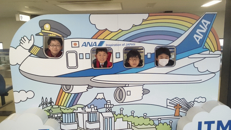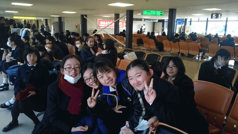 92名そろっての出発です。無事にゲートを通過し、今から飛行機で50分の空の旅です。無事に帰ってこれますようにマリア様にお祈りいたします。