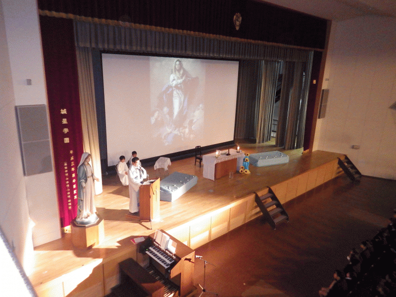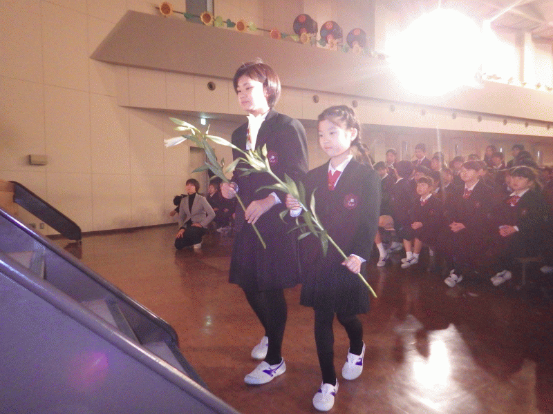 全 3007 件(全602ページ) 過去のページもご覧いただけます ⇒ 前へ 491 | 492 | 493 | 494 | 495 | 次へ 2014/12/12 6年生 調理実習 もう少しで冬休みというこの時期、6年生は家庭科のまとめとして調理実習を行いました。今日の献立は、皿うどんです。2月に行く長崎の郷土料理を自分たちで作ってみました。 6年生 調理実習 2014/12/12 もう少しで冬休みというこの時期、6年生は家庭科のまとめとして調理実習を行いました。今日の献立は、皿うどんです。2月に行く長崎の郷土料理を自分たちで作ってみました。 2014/12/10 冬の味 1年生の収穫した白菜、おいしく変身しました! 何やら調理室からいい香り。1年生の収穫したお化け白菜が「白菜スープ」に変身! 何やら調理室からいい香り。1年生の収穫したお化け白菜が「白菜スープ」に変身! 先生たちが心を込めて前日に作っておいたものです。おなべの前は、人気店のような長蛇の列。 先生たちが心を込めて前日に作っておいたものです。おなべの前は、人気店のような長蛇の列。 「どう?おいしい?」「うん、おいしい!」子ども達が成長を見守っていた白菜、やはり思い入れがある分、味も格別です。 「どう?おいしい?」「うん、おいしい!」子ども達が成長を見守っていた白菜、やはり思い入れがある分、味も格別です。 冬の味 2014/12/10 1年生の収穫した白菜、おいしく変身しました! 何やら調理室からいい香り。1年生の収穫したお化け白菜が「白菜スープ」に変身! 何やら調理室からいい香り。1年生の収穫したお化け白菜が「白菜スープ」に変身! 先生たちが心を込めて前日に作っておいたものです。おなべの前は、人気店のような長蛇の列。 先生たちが心を込めて前日に作っておいたものです。おなべの前は、人気店のような長蛇の列。 「どう?おいしい?」「うん、おいしい!」子ども達が成長を見守っていた白菜、やはり思い入れがある分、味も格別です。 「どう?おいしい?」「うん、おいしい!」子ども達が成長を見守っていた白菜、やはり思い入れがある分、味も格別です。 2014/12/9 マラソン大会表彰式 今日はマラソン大会の表彰式が行われました。 かなり冷え込んだマラソン大会当日。子どもたちはみんな精一杯走りました。 かなり冷え込んだマラソン大会当日。子どもたちはみんな精一杯走りました。 今日は男女別各学年の1位の児童に校長先生から表彰状が手渡されました。各学年の1位1年生男子 三重洵和介くん(大会新)1年生女子 石田七彩さん2年生男子 森田智也くん2年生女子 野々垣妃夏さん3年生男子 西村信くん3年生女子 寺田光さん4年生男子 中尾勇太くん4年生女子 平松ありささん5年生男子 勝間皓一くん5年生女子 松本奈々さん6年生男子 安陵将太郎くん6年生女子 柳生七海さん 今日は男女別各学年の1位の児童に校長先生から表彰状が手渡されました。各学年の1位1年生男子 三重洵和介くん(大会新)1年生女子 石田七彩さん2年生男子 森田智也くん2年生女子 野々垣妃夏さん3年生男子 西村信くん3年生女子 寺田光さん4年生男子 中尾勇太くん4年生女子 平松ありささん5年生男子 勝間皓一くん5年生女子 松本奈々さん6年生男子 安陵将太郎くん6年生女子 柳生七海さん マラソン大会表彰式 2014/12/9 今日はマラソン大会の表彰式が行われました。 かなり冷え込んだマラソン大会当日。子どもたちはみんな精一杯走りました。 かなり冷え込んだマラソン大会当日。子どもたちはみんな精一杯走りました。 今日は男女別各学年の1位の児童に校長先生から表彰状が手渡されました。各学年の1位1年生男子 三重洵和介くん(大会新)1年生女子 石田七彩さん2年生男子 森田智也くん2年生女子 野々垣妃夏さん3年生男子 西村信くん3年生女子 寺田光さん4年生男子 中尾勇太くん4年生女子 平松ありささん5年生男子 勝間皓一くん5年生女子 松本奈々さん6年生男子 安陵将太郎くん6年生女子 柳生七海さん 今日は男女別各学年の1位の児童に校長先生から表彰状が手渡されました。各学年の1位1年生男子 三重洵和介くん(大会新)1年生女子 石田七彩さん2年生男子 森田智也くん2年生女子 野々垣妃夏さん3年生男子 西村信くん3年生女子 寺田光さん4年生男子 中尾勇太くん4年生女子 平松ありささん5年生男子 勝間皓一くん5年生女子 松本奈々さん6年生男子 安陵将太郎くん6年生女子 柳生七海さん 2014/12/8 創立記念ミサ 今日は城星学園小学校、創立記念ミサが行われました。 創立者ドン・ボスコが少年バルトロメオ・ガレッリと出会い、オラトリオを始めたのが1841年の12月8日「無原罪のマリア様の祝日」でした。本校ではこの日を創立記念日と定め、毎年御ミサでお祝いしています。 創立者ドン・ボスコが少年バルトロメオ・ガレッリと出会い、オラトリオを始めたのが1841年の12月8日「無原罪のマリア様の祝日」でした。本校ではこの日を創立記念日と定め、毎年御ミサでお祝いしています。 本日の御ミサを執り行ってくださったのは、サレジオ会の岡本神父様です。ご自身が被災地で経験したことから「神様がそばにい