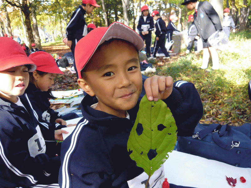 低学年は試走の後に、大阪城公園に残って生活科の学習の一環として「秋を探そう」を行いました。
