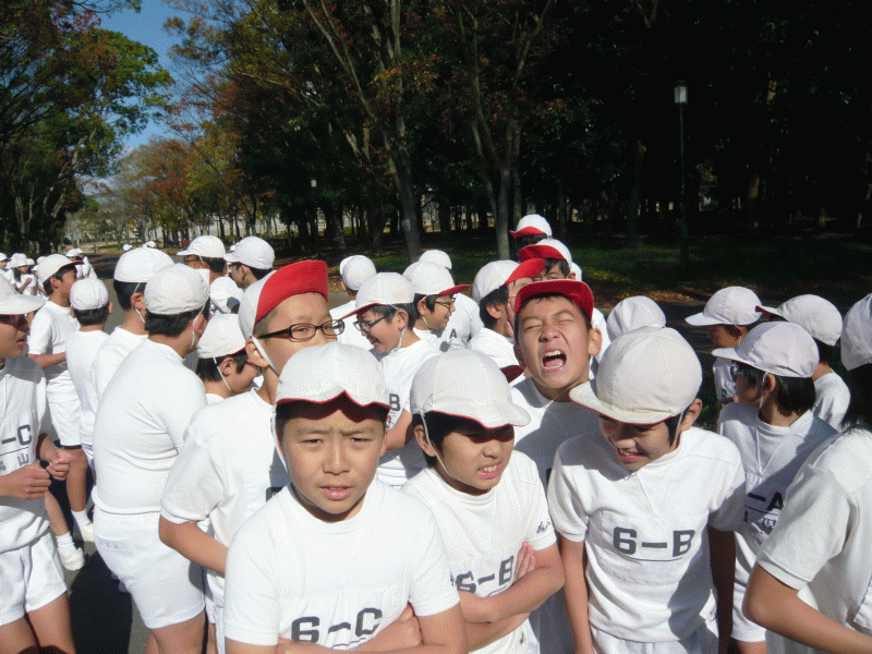 6年生は最後のマラソン大会。この顔は寒いのか、それとも気合が入ってるのか・・・