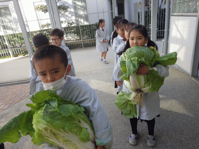来週この白菜を食べるそうです。どんな料理になるのかな?楽しみだな〜