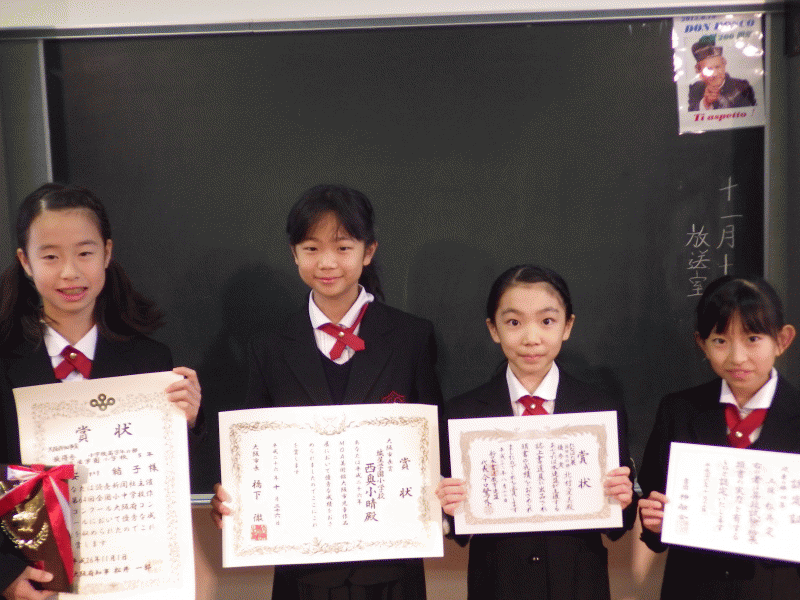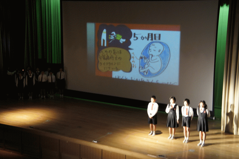 全 3007 件(全602ページ) 過去のページもご覧いただけます ⇒ 前へ 496 | 497 | 498 | 499 | 500 | 次へ 2014/11/26 調理実習 5年生は調理実習を行いました。 和食の基本、イリコを使って「だし」をとり、お味噌汁を作りました。 和食の基本、イリコを使って「だし」をとり、お味噌汁を作りました。 男子だけの調理実習は何やら熱気が!メガネ曇ってるよ〜 男子だけの調理実習は何やら熱気が!メガネ曇ってるよ〜 炊き立てのご飯は山盛りに!う〜ん男子! 炊き立てのご飯は山盛りに!う〜ん男子! モリモリ食べてフングン育て子ども達! モリモリ食べてフングン育て子ども達! あ、これは家庭科の授業です! あ、これは家庭科の授業です! 調理実習 2014/11/26 5年生は調理実習を行いました。 和食の基本、イリコを使って「だし」をとり、お味噌汁を作りました。 和食の基本、イリコを使って「だし」をとり、お味噌汁を作りました。 男子だけの調理実習は何やら熱気が!メガネ曇ってるよ〜 男子だけの調理実習は何やら熱気が!メガネ曇ってるよ〜 炊き立てのご飯は山盛りに!う〜ん男子! 炊き立てのご飯は山盛りに!う〜ん男子! モリモリ食べてフングン育て子ども達! モリモリ食べてフングン育て子ども達! あ、これは家庭科の授業です! あ、これは家庭科の授業です! 2014/11/25 個人懇談 6年生は一足早く個人懇談、進路の事やご家庭での様子など、先生と保護者の方で短い時間ではありますがお話します。 さあ、来られる前に教室を今一度きれいに! さあ、来られる前に教室を今一度きれいに! 先生の方が緊張してません? 先生の方が緊張してません? 保護者の方と先生で子ども達を一緒に共育(教育)です、これから6年生は忙しい時期になりますので、今後の事を踏まえしっかり子どもへの共通理解を深めます。 保護者の方と先生で子ども達を一緒に共育(教育)です、これから6年生は忙しい時期になりますので、今後の事を踏まえしっかり子どもへの共通理解を深めます。 個人懇談 2014/11/25 6年生は一足早く個人懇談、進路の事やご家庭での様子など、先生と保護者の方で短い時間ではありますがお話します。 さあ、来られる前に教室を今一度きれいに! さあ、来られる前に教室を今一度きれいに! 先生の方が緊張してません? 先生の方が緊張してません? 保護者の方と先生で子ども達を一緒に共育(教育)です、これから6年生は忙しい時期になりますので、今後の事を踏まえしっかり子どもへの共通理解を深めます。 保護者の方と先生で子ども達を一緒に共育(教育)です、これから6年生は忙しい時期になりますので、今後の事を踏まえしっかり子どもへの共通理解を深めます。 2014/11/22 第19回、学習発表会 今日は学習発表会、保護者の皆様に日頃の学習の成果を発表します。 1年生は音楽、「毎日がハッピー!」学校での1日を音楽にのせて、子どもたちのかわいい元気な歌声が講堂に響きました。 1年生は音楽、「毎日がハッピー!」学校での1日を音楽にのせて、子どもたちのかわいい元気な歌声が講堂に響きました。 2年生は算数、「長さのせかい」長さの単位としてmをならった子どもたちが、さまざまな単位の説明をしてくれました。特別ゲストは日本地図を歩いて測量した伊能忠敬! 2年生は算数、「長さのせかい」長さの単位としてmをならった子どもたちが、さまざまな単位の説明をしてくれました。特別ゲストは日本地図を歩いて測量した伊能忠敬! 3年生は国語、「泣いた赤鬼」みなさんご存知のお話を劇仕立てで・・・子どもたちの熱演が光りました。 3年生は国語、「泣いた赤鬼」みなさんご存知のお話を劇仕立てで・・・子どもたちの熱演が光りました。 4年生は英語、「KASAKOROTARO」笠地蔵・おむすびころりん・桃太郎を一つのお話にまとめました。至る所に伏線が張っており、見事にすべてがつながります。笠地蔵が桃太郎を助けるシーンでは、大きな拍手が起こりました。 4年生は英語、「KASAKOROTARO」笠地蔵・おむすびころりん・桃太郎を一つのお話にまとめました。至る所に伏線が張っており、見事にすべてがつながります。笠地蔵が桃太郎を助けるシーンでは、大きな拍手が起こりました。 5年生は音楽、「希望」ドン・ボスコの言葉にある通り「音楽のない学校、それは魂のない体」。5年生は大好きな音楽で、来てくださった方々に希望を届けました。男声合唱、女声合唱もピシッと決まってました! 5年生は音楽、「希望」ドン・ボスコの言葉にある通り「音楽のない学校、それは魂のない体」。5年生は大好きな音楽で、来てくださった方々に希望を届けました。男声合唱、女声合唱もピシッと決まってました! 6年生は宗教家道徳「命」生きる事ってなに?私たち誰もが持つ疑問。子どもたちは自分が生まれた時の事や、家族とのつながりを通して発表してくれました。感動的な発表に思わず涙・・・ 6年生は宗教家道徳「命」生きる事ってなに?私たち誰もが持つ疑問。子どもたちは自分が生まれた時の事や、家族とのつながりを通して発表してく