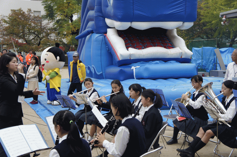 まずは開幕式、「年に1度のお祭り日みんなで楽しみましょう!」ということで幕を開けたフェスタ、小学校中学校の吹奏楽を伴奏にドン・ボスコの歌を元気に歌って始まりました。
