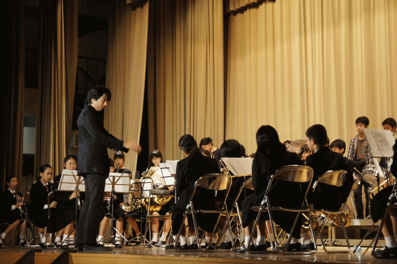 講堂ではアンサンブルが演奏。日頃の練習の成果を発表しました。卒業生も多数出演!