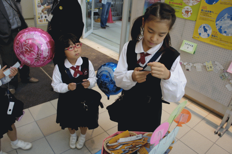 講堂下のドン・ボスココーナーでは手作りのしおりがもらえました。
