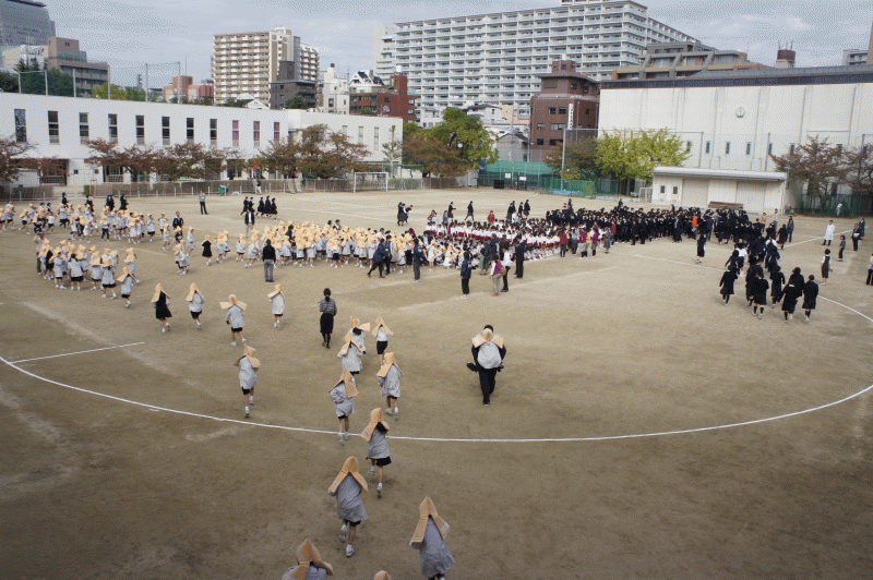 グラウンドに出たら駆け足!今日は全校種だったので学園全体がグラウンドに集まりました。