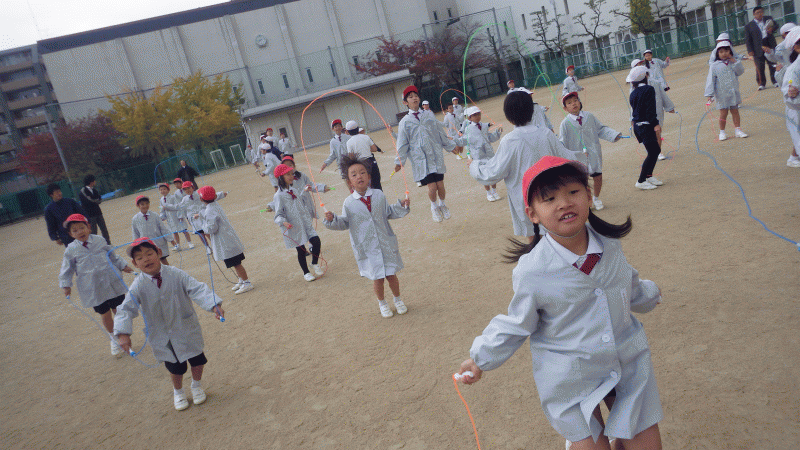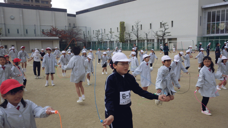 1年生から6年生も、男子も女子も、みんなでぴょんぴょん!
