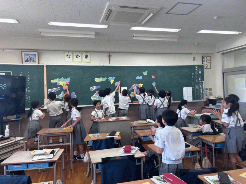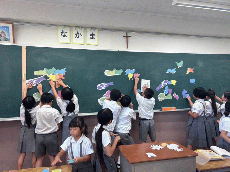 三年生の社会の授業を覗きました。黒板にパズル…?