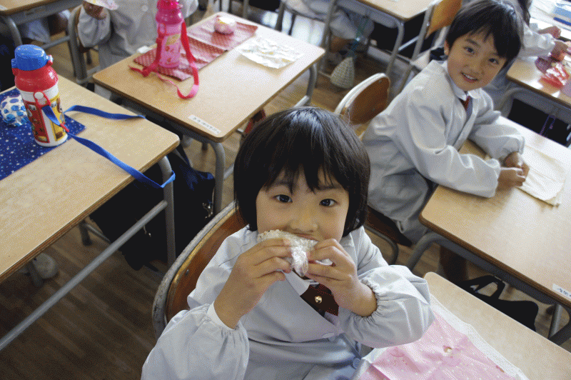 今日は、2学期初めてのおにぎり弁当の日です。