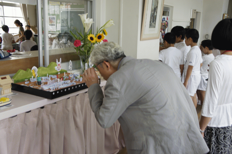 今日は夏休み作品展、午前中は保護者の方も子どもたちの力作を見に来られていました。