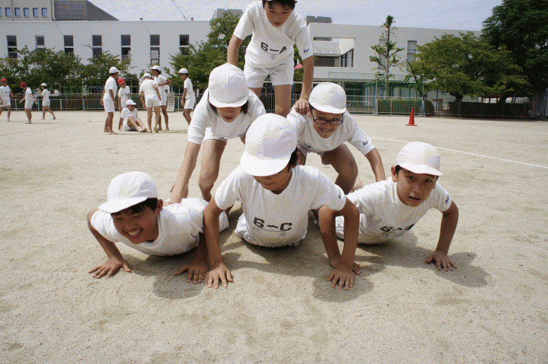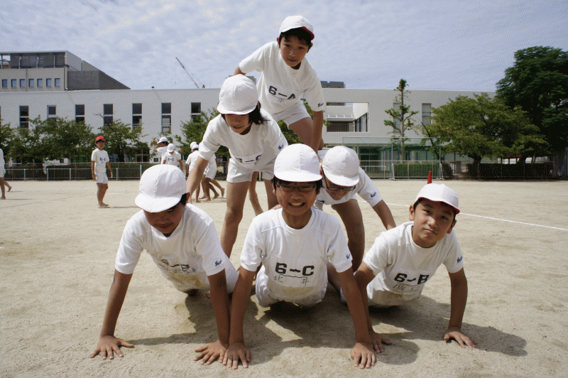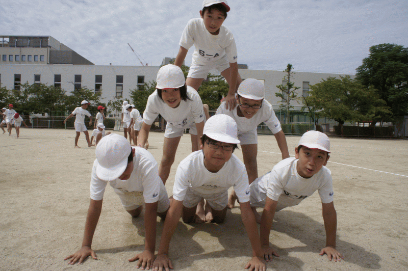 高学年が取り組んでいるのは組体操、毎年感動を与えてくれる運動会の目玉!
