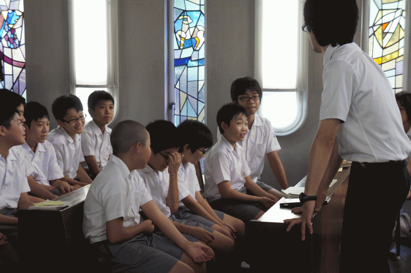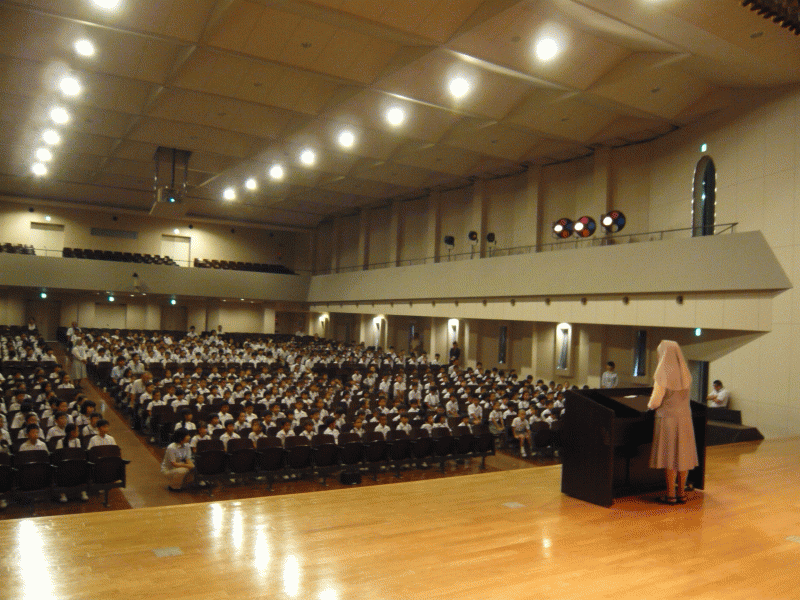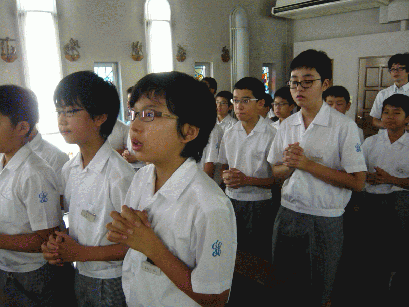 朝、祈りを持って黙想会を始めます。2学期を始めるにあたり、子どもたちのたちの成長を神に祈り一致を持って学期を開くのです。
