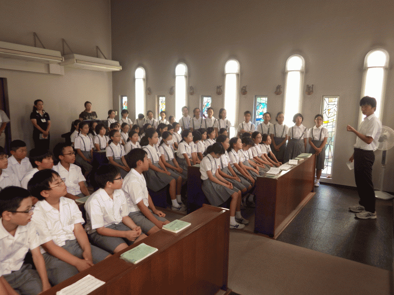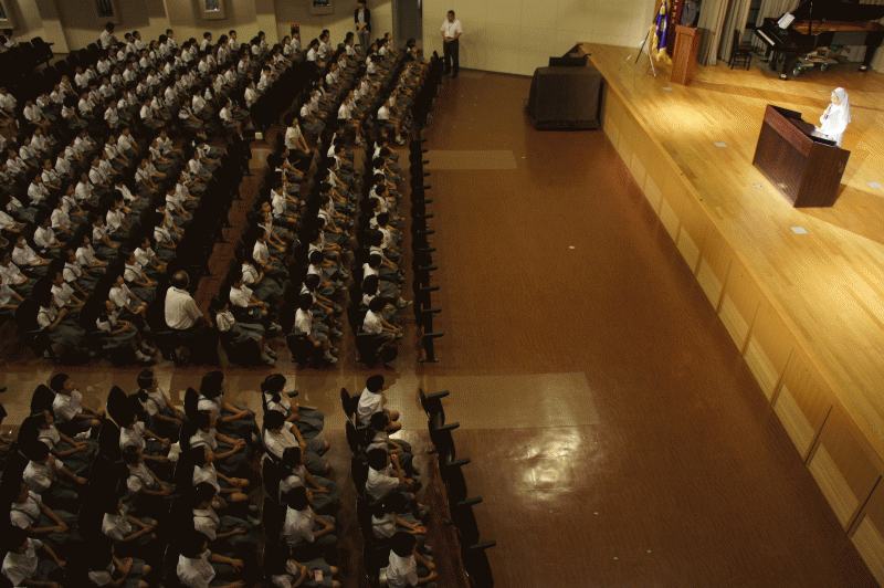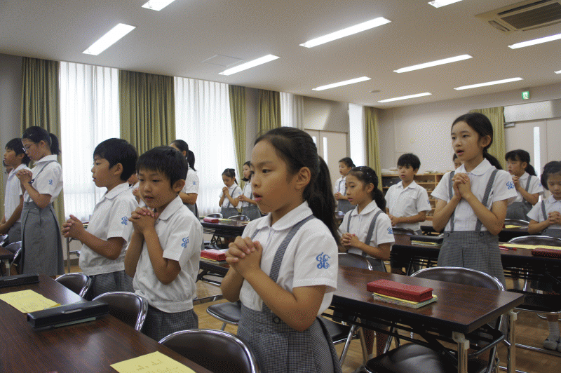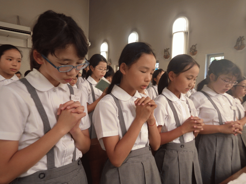 1学期も後1日。お御堂でお祈りをする学年、クラスもありました。